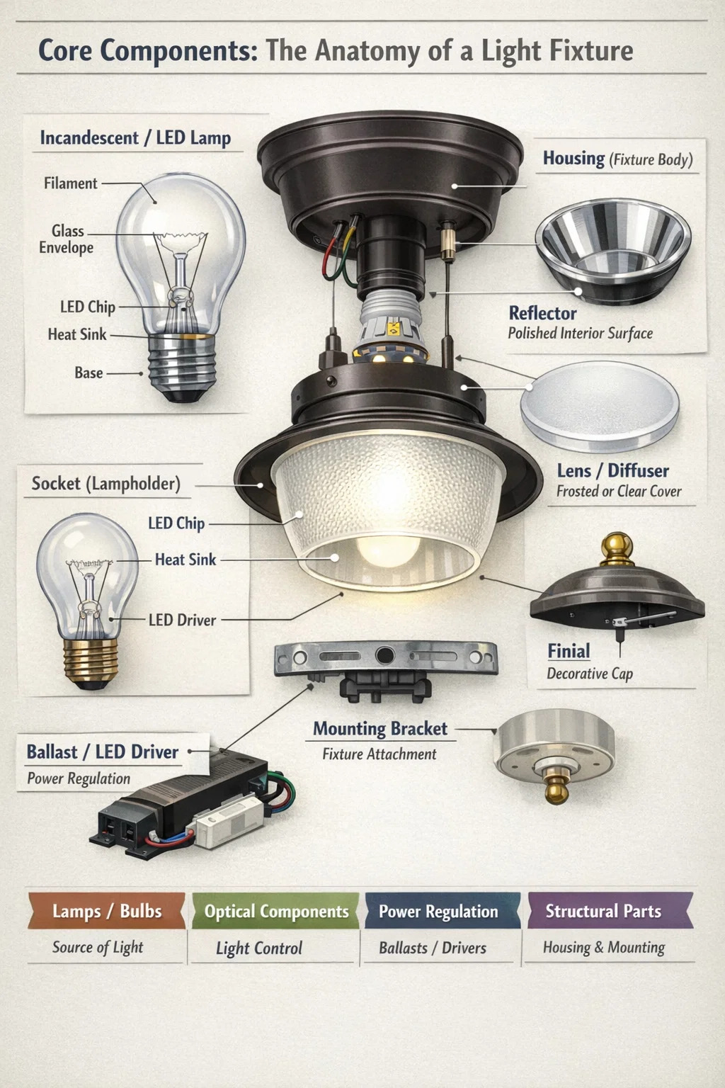 핵심 구성 요소: 조명 기구의 주요 구조
